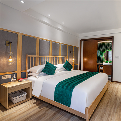 这里的每个房间都有自己独特的名字,读起来齿颊生香。房间布置温馨,原木色家具和白色遮光窗纱营造出一副居家感,深绿色的抱枕调和出复古感,午后阳光投入室内,微风吹起窗帘,躺在柔软的床上小憩,一切都陷入慵懒的梦中。房间里必需品一应俱全,充电线、香氛、水果等等,细致入微的照顾让人宾至如归。